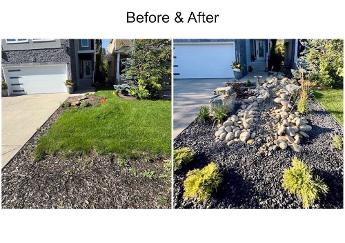 "We couldn't be happier with Rundle Landscaping. Colin and his team transformed our front yard from grass and overgrown junipers to a low maintenance garden with seating patio. The crew was professional and responsive, in frequent contact with Colin through the day and followed our landscape plan. They were careful to 'clean as they go' and kept our driveway and the street clean by removing garbage regularly.